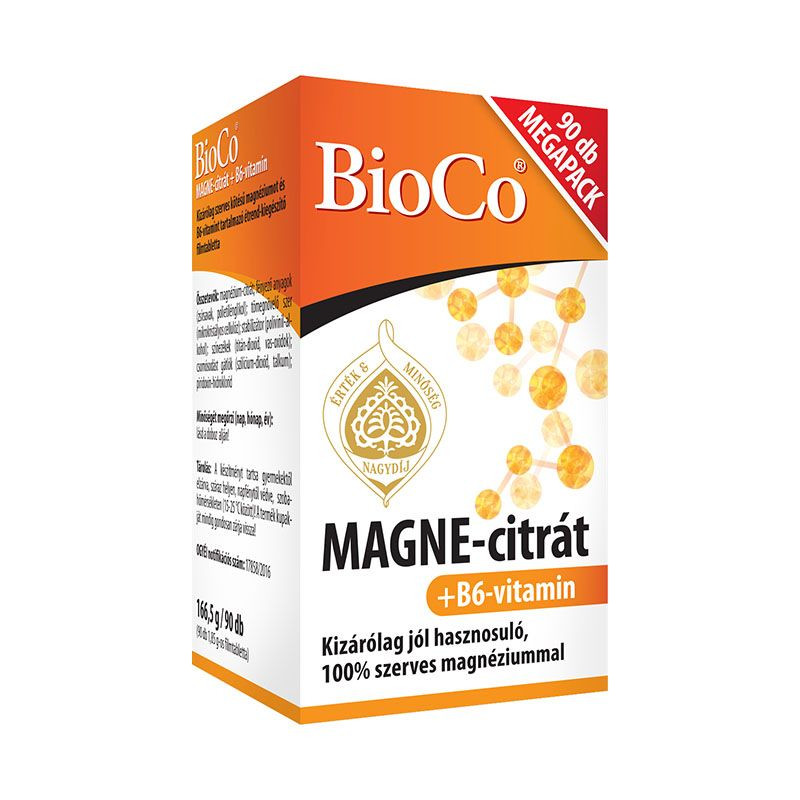 A BioCo Magne-citrát kizárólag szerves kötésű, jól hasznosuló formában tartalmazza a magnéziumot, amely a normál pszichológiai funkció fenntartásához, a normális izom- és idegrendszer működéshez, a fáradtság és kifáradás csökkentéséhez szükséges. A B6-vitamin hozzájárul az ideg- és immunrendszer normál működéséhez, a hormonális aktivitás szabályozásához, a normál vörösvérsejt-képződéshez, valamint a fáradtság és kifáradás csökkentéséhez.