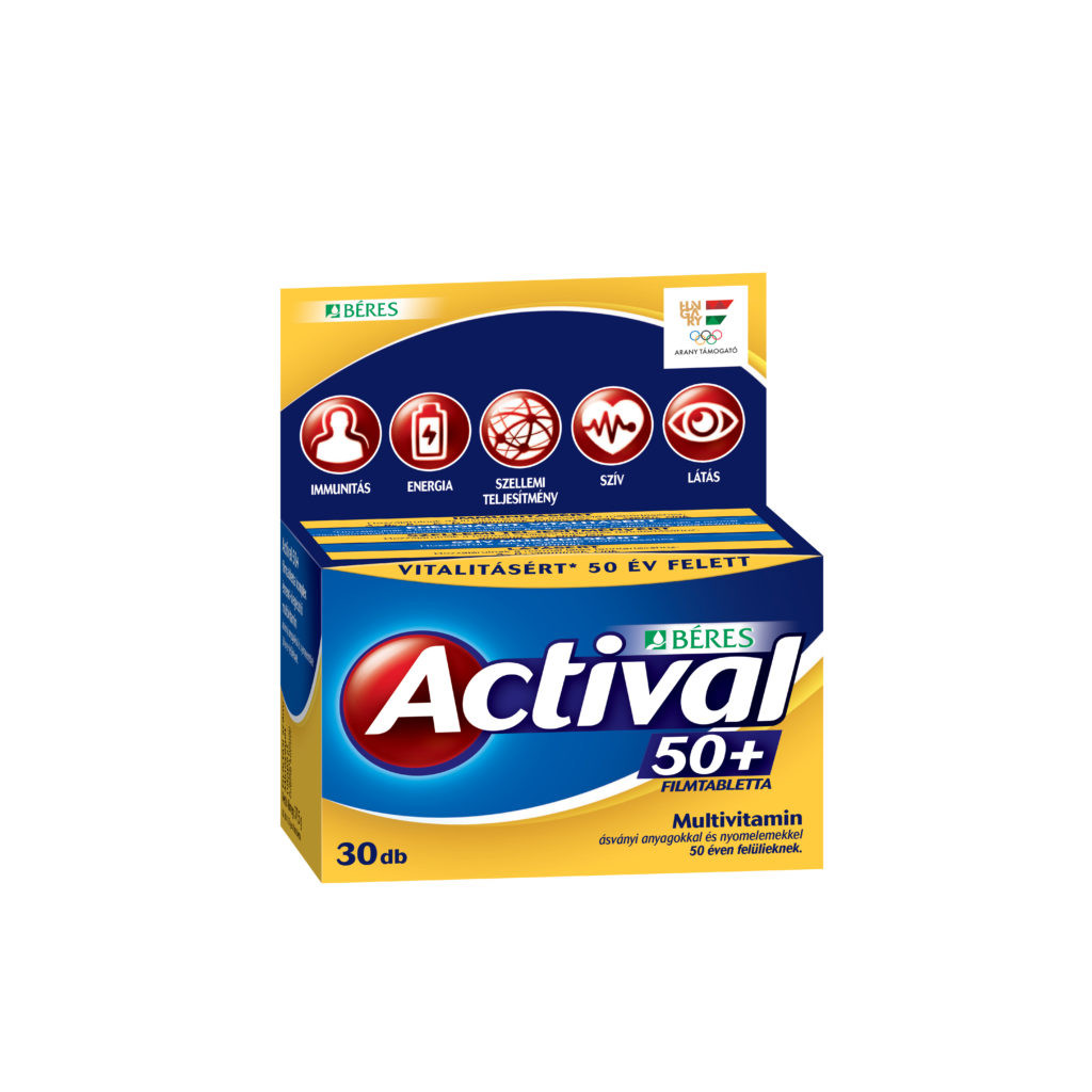 Az Actival 50+ filmtabletta komplex étrend-kiegészítő multivitamin ásványi anyagokkal és nyomelemekkel 50 éven felülieknek.