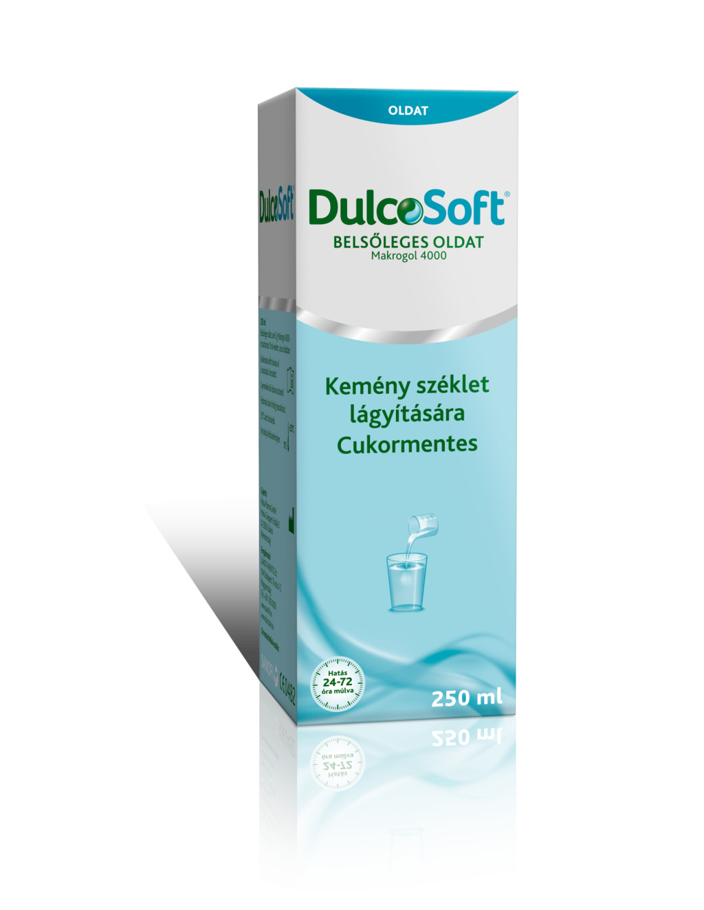 DulcoSoft kíméletes székletlágyító kemény széklet esetén, mely hosszabb távon is alkalmazható és már 2 éves kortól adható. Könnyen bevehető glutén- és cukormentes oldat. Hatása a bevételt követően 24-72 óra múlva jelentkezik.
