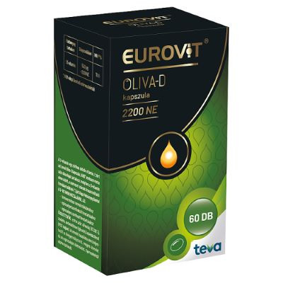 Az Eurovit Oliva-D 2200 NE kapszula D-vitamin extra szűz olívaolajban étrend-kiegészítő. Az étrend-kiegészítő használata nem helyettesíti a kiegyensúlyozott, vegyes étrendet és az egészséges életmódot. Forgalmazza: Teva Gyógyszergyár Zrt. 4042 Debrecen, Pallagi út 13.