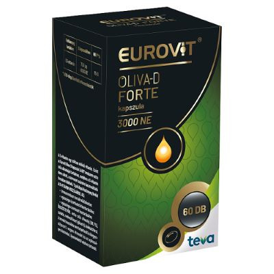 Az Eurovit Oliva-D Forte 3000 NE kapszula D-vitamin extra szűz olívaolajban étrend-kiegészítő. Az étrend-kiegészítő használata nem helyettesíti a kiegyensúlyozott, vegyes étrendet és az egészséges életmódot. Forgalmazza: Teva Gyógyszergyár Zrt. 4042 Debrecen, Pallagi út 13.