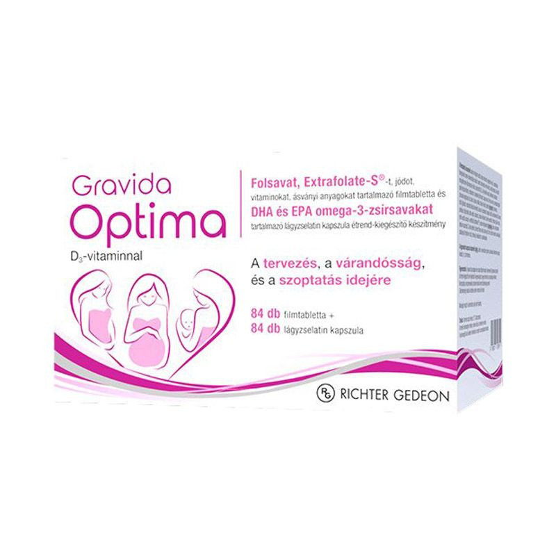 A Gravida Optima étrend-kiegészítő komplex összetétele figyelembe veszi a hazai táplálkozási szokásokat, a vitaminokat és ásványi anyagokat tartalmazó filmtabletta mellett a lágyzselatin kapszula omega-3 zsírsavakkal támogatja a megnövekedett tápanyagszükséglet megfelelő kiegészítését.