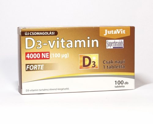 JutaVit D3-vitamin 4000NE (100µg) 100 db-os D3-vitamin tartalmú étrend-kiegészítő.